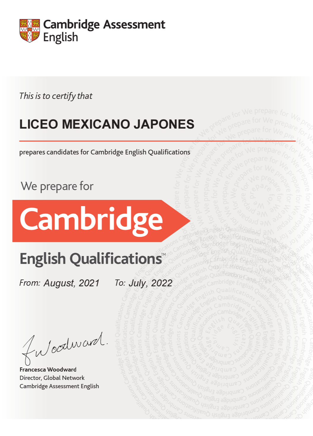 Nuestro querido Liceo Mexicano Japonés ha recibido el certificado que lo avala como miembro numerado de la red nacional de Centros de Preparación para certificaciones y evaluaciones Cambridge Assessment English.