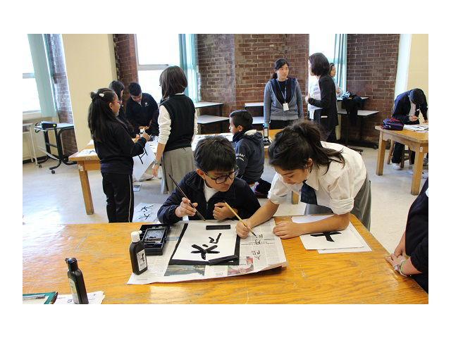 11月下旬に、メキシココース5年生と書写交流を行いました。まだまだ拙いスペイン語にジェスチャーを交え、一生懸命関わろう、伝えようとする子どもたち。はじめて筆をもつメキシココースの友達の、「かけた!」「やった!」という笑顔を見て、たいへん嬉しそうでした。充実した交流の時間となりました。