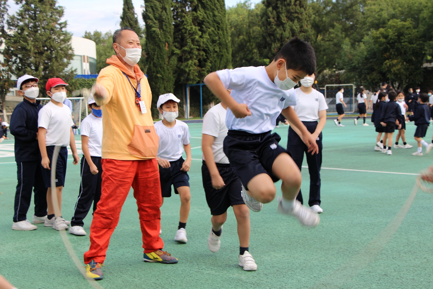 6月14日(火曜日)、学級の仲間と共に励まし合いながら力を合わせて取り組むことを目標として、全校で長縄記録会を行いました。本番に向けて、およそ2週間前から学年ごとに練習を開始。どの学年も自分たちで目標回数や目指す姿を決めて練習に励み、本番で練習の成果を発揮して最高記録を出すことができました。他の学年へ温かい声援をおくる姿も見られ、リセオの子供たちの仲間意識も高まりました。